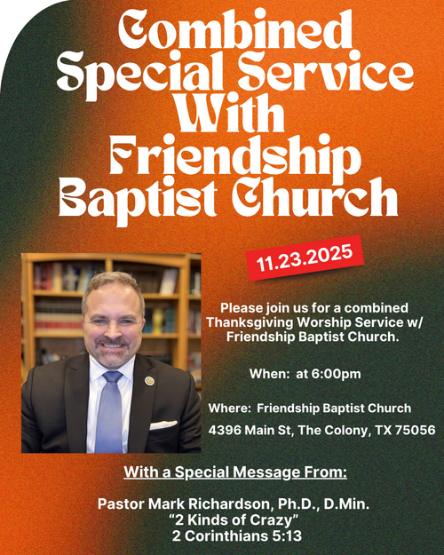 First Baptist Church of The Colony is a local expression of the body of King Jesus. We are: Elder-led, Word-based, Great Commission-focused; and Unwoke. Come find your identity, purpose, and final destiny in King Jesus with us. Join us for our Sunday services!