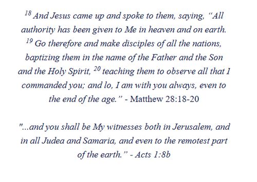 We are engaged in helping to fulfill The Great Commission in the neighborhoods and the nations.